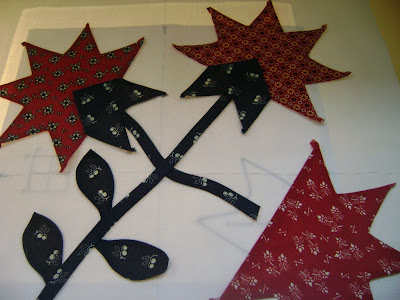 Then when I came to the leaves I was going to use the freezer paper and starch method but I couldn't get smooth curves.